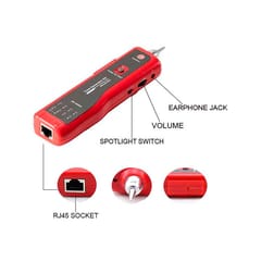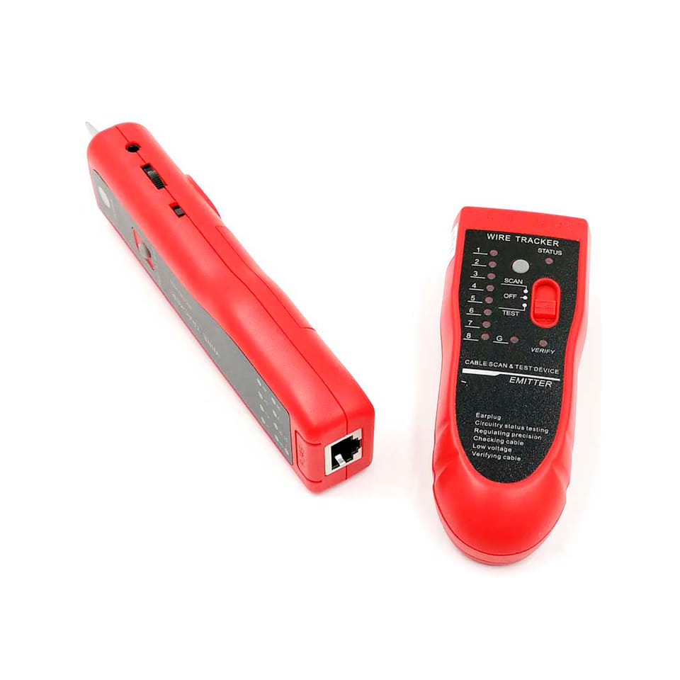 TESTER SZUKACZ PAR PRZEWODÓWNajważniejsze cechy Lokalizacja poszukiwanych przewodów. Weryfikacja i identyfikacja przewodów oraz ich stanu. Pomiar oraz test ciągłości przewodów. Poszukiwanie oraz weryfikacja zwartych przewodów.PrzeznaczenieWysokiej jakości tester sieci – szukacz par przewodów Pozwala na identyfikację przewodów w wiązkach kablowych i wskazywanie kabli przypisanych do poszczególnych gniazd. Poprawność wskazania sygnalizowana jest wyraźnym modulowanym sygnałem dźwiękowym.Dzięki gniazdom w nadajniku oraz dołączonym kablom możliwa jest identyfikacja zarówno kabli ethernet (RJ45) jak i telefonicznych (RJ11).Tester składa się z dwóch części:nadajnika-generatora i odbiornika-detektora pozwalających na wygodne wyszukiwanie i testowanie poprawności wykonania elementów sieci komputerowej o długości do 300m.Odbiornik-detektor wyposażony jest lampkę LED pomocną przy pracy w słabo oświetlonych miejscach. W komplecie dołączone są słuchawki ułatwiające wyszukiwanie kabli w miejscach o wysokim poziomie hałasu.Wraz z testerem (nadajnik i odbiornik) dołączone są akcesoria takie jak kabel telefoniczny RJ-11, ethernetowy RJ-45, kabel z zaciskami szczękowymi (typ krokodyl), słuchawki, bateria.Specyfikacja produktu Napięcie zasilania: 2x9V (baterie w komplecie) Długość testowanych przewodów: Do 300m Wymiary nadajnika-generatora: 126mm/49mm/34mm Masa nadajnika-generatora: ok. 60g Wymiary odbiornika-detektora: 175mm/42mm/27mm Masa odbiornika-detektora: ok. 72g Komplet zawiera: Nadajnik Odbiornik Bateria 9V (2 szt.) Komplet kabli pomiarowych Słuchawki Skrócona instrukcja obsługi Futerał