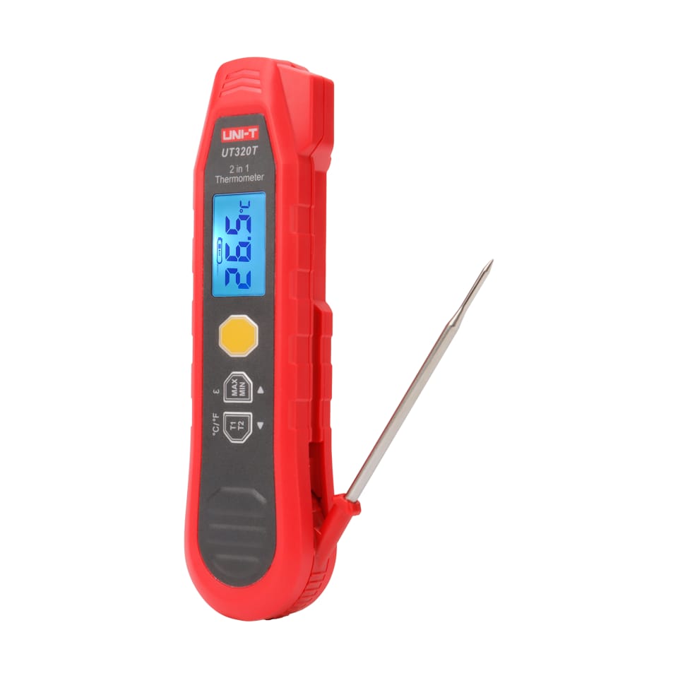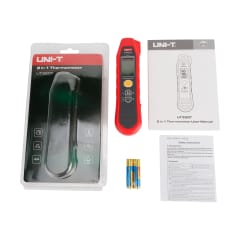 ----------POMIAR TEMPERATURY----------Pomiar w podczerwieni:Zakres: -40°C ~ 300°C ±2°C powtarzalność 1°C Zakres: -40°F ~ 572°F ±4°F powtarzalność 2°FRozdzielczość: 0,1°C / 0,1°FEmisyjność: 0,1 ~ 1Pomiar sondą:Zakres: -40°C ~ 300°C ±2°C Zakres: -40°F ~ 572°F ±4°F Rozdzielczość: 0,1°C / 0,1°FTyp sondy: NTC----------DODATKOWE FUNKCJE----------Zapis danych pomiarowychAutomatyczne wyłączanieBlokada pomiaru----------OGÓLNE----------Klasa ochronności: IP54Zasilanie: bateria 1,5 V (AAA) x2 Wymiary: 155 x 42 x 22,5 mmWaga: 110 gAkcesoria: baterie