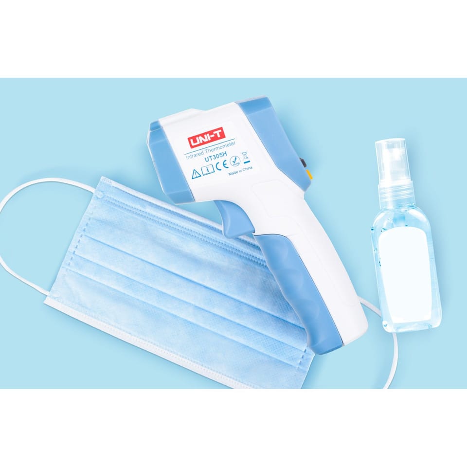 Miernik temperatury UNI-T UT305H, wykorzystując najnowszą technologię umożliwia dokonanie pomiarów temperatury w zakresie 32°C-42,9°. Duża dokładność urządzenia pozwala na szybką i precyzyjną kontrolę temperatury ciała, jak też innych elementów otoczenia, np. przedmiotów, jedzenia, płynów itp. Termometr bezdotykowy Elektroniczny termometr UT305H, dzięki technologii podczerwieni, umożliwia pomiar z odległości od 5 do 10 cm. Wystarczy zbliżyć urządzenie do czoła i dokonać odczytu! Jest to szczególnie pomocne, w sytuacjach gdy chcesz szybko i bezstresowo skontrolować temperaturę ciała. Termometr na czas epidemii Zastanawiasz się jaki termometr bezdotykowy będzie odpowiedni, by w warunkach epidemii czy innego zagrożenia szybko sprawdzić temperaturę pracownikom czy osobom odwiedzającym twoją firmę? Miernik UT305H będzie doskonałym wyborem. Tym bardziej, że o przekroczeniu wartości 37,2°C urządzenie powiadomi Cię alarmem dźwiękowym. Łatwy w obsłudze termometr Termometr UT305H wyposażony został w ergonomiczny uchwyt i wyróżnia się prostotą obsługi. Dokonane pomiary można szybko sprawdzić na przejrzystym wyświetlaczu, a podświetlenie LED sprawia, że komfortowo możesz korzystać z urządzenia także w nocy.
