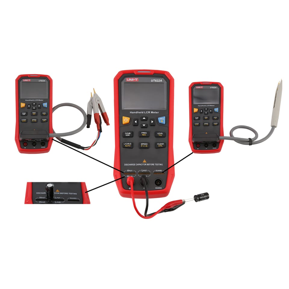 -----------PARAMETRY GŁÓWNE-----------Częstotliwości testowe: 100 Hz, 120 Hz, 1 kHz, 10 kHz Poziomy testowe: 0,1 Vrms, 0,3 Vrms, 1 VrmsImpedancja wyjściowa: 100 OhmParametry pomiarowe: główne (L/C/R/Z), dodatkowe (D/Q/ESR)Szybkość testu: 20/5/2 na sekundęZakres tolerancji: 1%~20%Tryby: równoległy/szeregowyGniazdo komunikacyjne: miniUSBMaksymalny odczyt: 99999Minimalna rozdzielczość: 0.0001Maksymalna dokładność: 0.10%-----------ZAKRESY POMIAROWE-----------L: 0,00 µH ~ 99,999 HC: 0,00 pF ~ 99,999 mFZ/R: 0,000 ? ~ 9,9999 M?ESR: 0,000 ? ~ 999,99 ?D: 0,0000 ~ 9,9999Q: 0,000 ~ 99999?: -179,9° ~ 179,9°-----------CECHY OGÓLNE-----------Zasilanie: bateria 3,7 V / 1800 mAh / ładowanie 5 V/1 AWyświetlacz: 2,8’ TFT LCD 320 x 240Waga: 420 gWymiary: 93 x 192 x 44 mm