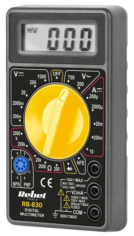 Miernik REBEL RB-830 jest wyposażony w funkcje testowania diod i tranzystorów (hFE), co pozwala na szybką diagnozę elementów elektronicznych. To nieoceniona pomoc przy sprawdzaniu stanu komponentów, umożliwiająca szybkie lokalizowanie usterek w układach elektronicznych.