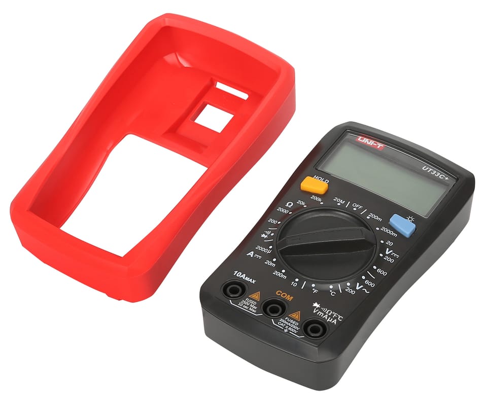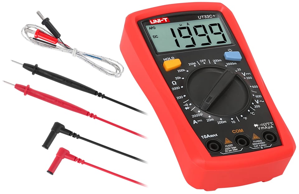 Akcesoria: Baterie, przewody pomiarowe, holster