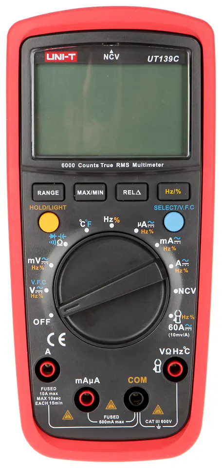 | Pomiar częstotliwości: | 9.999 Hz ... 9.999 MHz ± (0.15 + 4) @ 0.001 Hz ... 0.001 MHz |