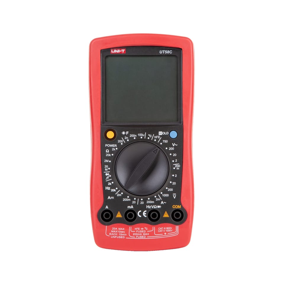 ZAKRESY POMIAROWENapięcie stałe DC: 200 mV/2 V/20 V/200 V/1000 V ±(0,5%+1) Napięcie zmienne AC: 2 V/20 V/200 V/750 V ±(0,8%+3) Natężenie prądu stałego DC: 2 mA/200 mA/20 A ±(0,8%+1) Natężenie prądu zmiennego AC: 2 mA/200 mA/20 A ±(1%+3) Rezystancja: 200 Ohm/2 kOhm/20 kOhm/2 MOhm/20 MOhm ±(0,8%+1) Pojemność: 2 nF/200 nF/100 µF ±(4%+3) Temperatura: -40°C~1000°C ±(1%+3)Częstotliwość: 2 kHz/20 kHz ±(1,5%+5) Test diodSprawdzanie ciągłości obwoduBadanie tranzystorówDODATKOWE FUNKCJERęczna zmiana zakresów pomiarowychZamrożenie ostatniego wskazaniaAutomatyczne wyłączanieWskaźnik niskiego poziomu bateriiMaksymalny odczyt: 2000CECHY OGÓLNEZasilnie: bateria 9 VRozmiar wyświetlacza: 60 x 54 mmWaga produktu: 351 g Wymiary produktu: 179 x 88 x 39 mmAkcesoria: Bateria, przewody pomiarowe, sonda pomiaru temperatury, przystawka pomiarowa, holster