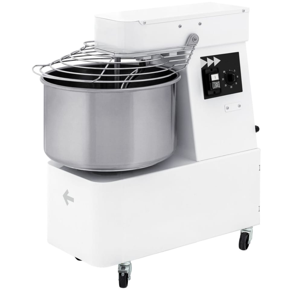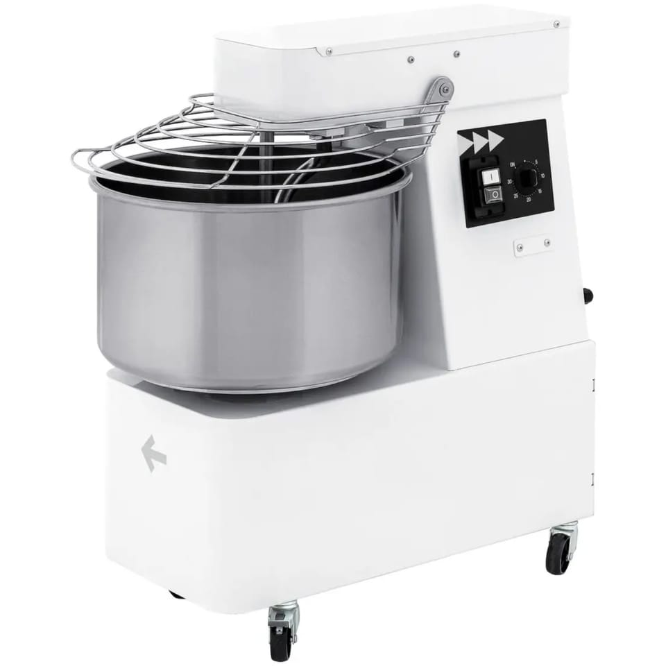 Kod producenta: 1030821Miesiarka spiralna ze stałą dzieżą firmy Prismafood wydajnie miesza ciężkie ciasto na 2 poziomach prędkości. Spiralny kształt zapewnia perfekcyjnie jednorodne ciasto. Idealnie sprawdzi się na przykład w pizzeriach czy piekarniach. Masywna i wytrzymała obudowa wykonana została ze stali lakierowanej na biało, a dzieża, osłona bezpieczeństwa i spirala ze stali nierdzewnej AISI 304. Kratowana osłona bezpieczeństwa ułatwia dodawanie składników podczas pracy. Mikrowyłącznik zatrzymuje pracę urządzenia przy otwarciu osłony bezpieczeństwa. Miesiarka posiada napęd łańcuchowy zapewniający wydajną pracęoraz 2-biegowe pokrętło zmiany prędkości mieszania. Drugi bieg umożliwia uzyskanie większej hydracji oraz jeszcze lepszego wyrobienia ciasta.Cechy produktu: