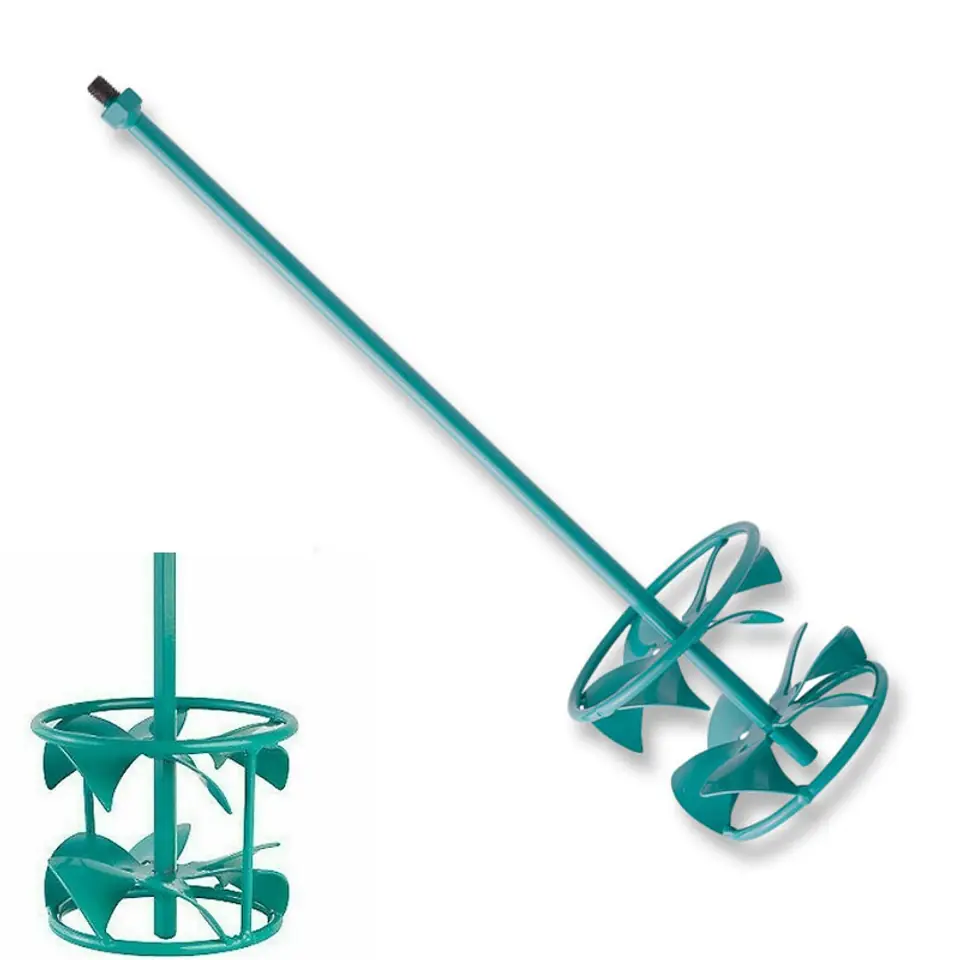 Mieszadło Collomix 40974-000 DLX 120 M do zapraw cienkowarstwowych, dużych ilości farby, mas szpachlowych, powłok, efekt mieszania od góry do dołu Nadaje się do: mas szpachlowych, zapraw cienkowarstwowych, zaczynów, klejów, bez bitumu uszczelki Mieszadło DLX zostało specjalnie opracowane do optymalnego przygotowania cienkowarstwowej zaprawy do klejenia płaskich kamieni.