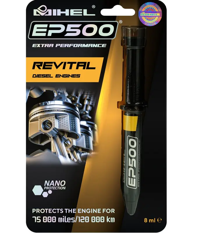 Mihel EP 500 – preparat o wysokiej skuteczności działania, przeznaczony do ochrony i rewitalizacji silników Diesla. Innowacyjna formuła nano cząsteczek o wysokiej zdolności powierzchniowo czynnej tworzy na strukturze metalu wytrzymałą stabilną powłokę ochronną ceramiczno-metalową o niskich współczynnikach oporu i doskonałych właściwościach przewodności cieplnej. Powoduje znaczne obniżenie tarcia oraz stałą ochronę podzespołów, praktycznie eliminując proces ich zużycia. Regularne stosowanie pozwala znacząco wydłużyć żywotność silnika.