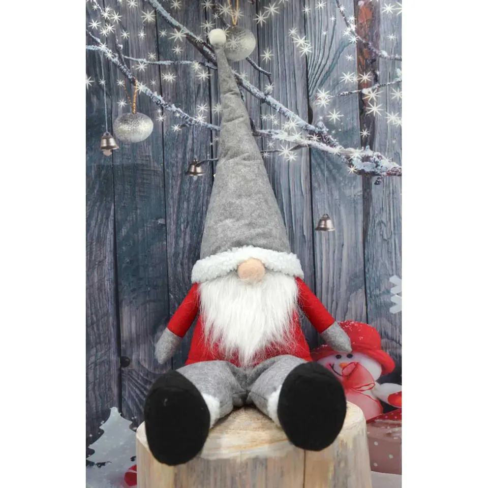 Parametry:- Wymiary produktu (całkowite) ok.: 25 x 12 x 75 cm (szer. x gł. x wys.)Wymiary produktu na siedząco ok.: 50 x 25 x 24 cm (wys. x szer. x gł. – zwisające nogi)Materiał: poliester, piasekKolor: szary, czerwony, biały, czarnyWaga netto ok.: 0,515 kgWaga brutto ok.: 0,600 kgMarka: Saska Garden – linia Saska Chrismas