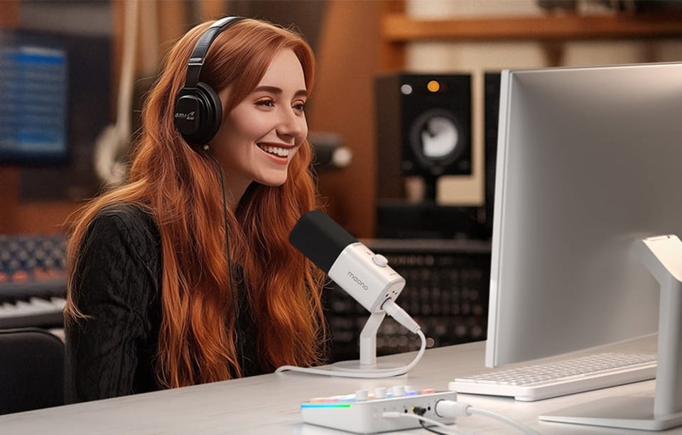 Mikrofon korzysta z połączenia elementów tłumiących (gąbka filtrująca, kapsuła z tłumieniem pozaosiowym) oraz zaawansowanego przetwarzania DSP w oprogramowaniu Maono Link. Dzięki temu dźwięk pozostaje czysty nawet w trudniejszych warunkach – np. podczas streamowania w otwartym pomieszczeniu czy pracy w hałaśliwym otoczeniu.