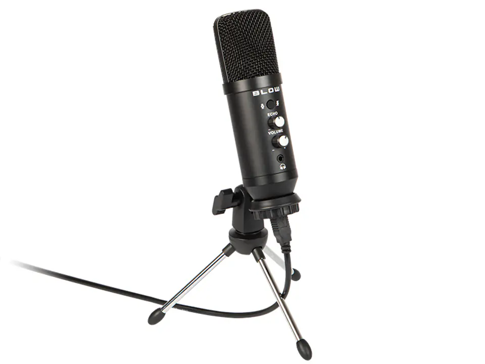 Wysokiej jakości mikrofon studyjny marki BLOW z pełnym wyposażeniem, dzięki któremu produkt jest gotowy do natychmiastowego użycia. Dzięki podłączeniu za pośrednictwem interfejsu USB mikrofon idealnie nadaje się do komputerów czy laptopów w celu nagrywania różnego rodzaju dźwięków, streamowania czy innych celów.
