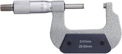 Mikrometr z odkuwanym kabłąkiem i chromowaną na mat podziałką, przeznaczony do pomiarów zewnętrznych. Hartowane wrzeciono o średn. 6.5 mm z dokładnie docieranymi powierzchniami pomiarowymi z węglików spiekanych