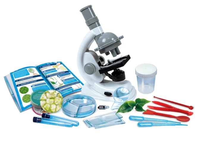 Jest bogato wyposażony w instrumenty, które pomogą w obserwacji otaczającego nas świata: slajdy z tworzywa sztucznego, zlewki, pipety i szkła powiększające.
