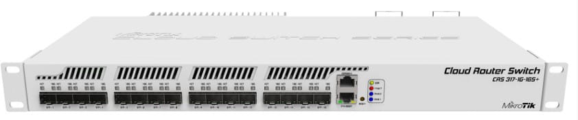Nowy Cloud Router Switch 317-1G-16S+RM to zarządzalny przełącznik do montażu w szafie serwerowej z funkcjami warstwy 3, wyposażony w 16 portów SFP+ zapewniających wysoką wydajność łączności 10GbE oraz miedziany port 1GbE do zarządzania.