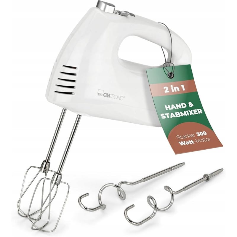 NAJWYŻSZEJ JAKOŚCIMIKSER BLENDER RĘCZNYRENOMOWANEJ FIRMY CLATRONICMODEL: HM 3524Ręczny mikser to już dziś niemal obowiązkowe wyposażenie każdej kuchni. W Twojej nie może zabraknąć niezawodnego modelu Clatronic HM 3524 z blenderem.Dzięki temu urządzeniu przyspieszysz przygotowywanie dań, a do tego gotowanie stanie się po prostu łatwiejsze. Ubijaj, mieszaj i miksuj – robot Clatronic wyręczy Cię w tych wszystkich czynnościach, a Ty będziesz miała więcej czasu dla siebie.Akcesoria:2 trzepaczki ze stali nierdzewnej,2 haki do ciasta ze stali nierdzewnej,końcówka "blender" do szybkiego miksowania ze stali nierdzewnejRęczny blender i mikserMocny silnik o mocy 300W5 stopni prędkościFunkcja turboPrzycisk zwalniający trzepaczki2 trzepaczki ze stali nierdzewnej,2 haki do ciasta ze stali nierdzewnej,Końcówka "blender" do szybkiego miksowania ze stali nierdzewnejUbijacze oraz haki nadają się do mycia w zmywarceZasilanie napięciowe: 230 V, 50/60 HzPobór mocy: 300 WWymiary: 89x142x198mm (SxWxGWaga: 1.20slimtex