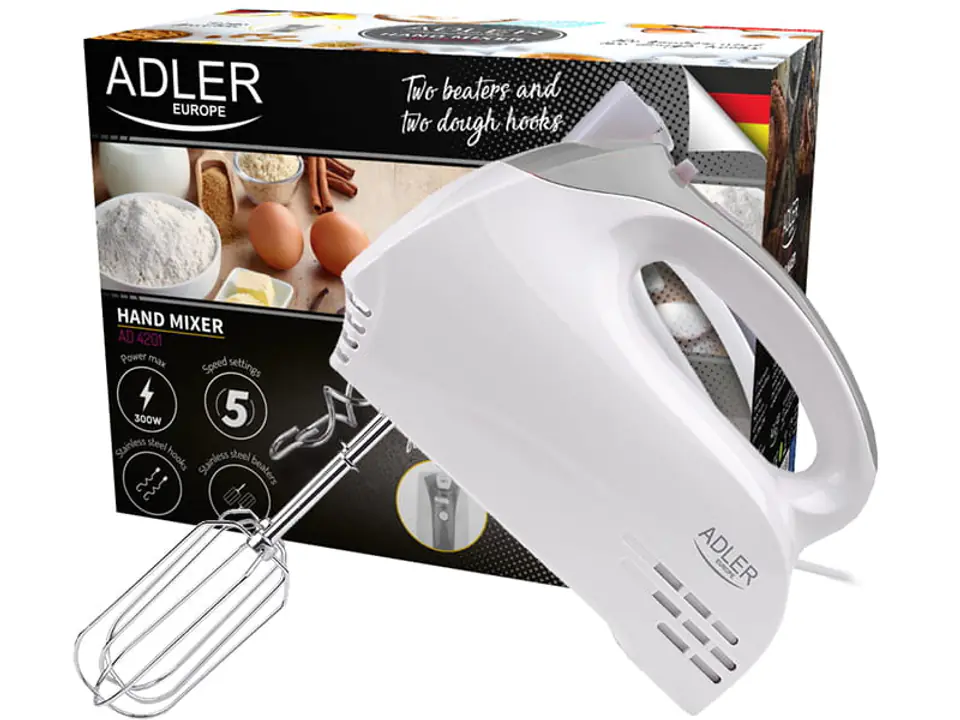 Wybór miksera zależy od tego, do czego będziesz go potrzebować. Jeżeli używasz niewielu składników i nie pieczesz dużych ilości to ręczny mikser zdecydowanie będzie najlepszym wyborem. Mobilny, lekki nie sprawi trudności nawet przy dłuższym miksowaniu. Poza tym możesz ubijać nim w różnych naczyniach. Robot kuchenny mikser ADLER AD 4201 to poręczny robot z mocą 300 W. Posiada pięć różnych prędkości, więc nada się do mieszania rożnych konsystencji. Funkcja turbo w razie potrzeby da radę nawet opornej masie.