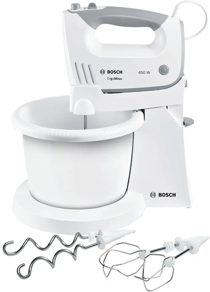 Mikser BOSCH MFQ 36460 z serii ErgoMixx ułatwia wykonywanie różnych prac w kuchni. Duża moc i ergonomiczny uchwyt zapewniają doskonałe rezultaty. Ten wydajny mikser o mocy 450 W może być używany do różnych zadań, takich jak wyrabianie ciasta, ubijanie śmietany czy mieszanie sosów. Dzięki wytrzymałemu silnikowi nie tylko wykona wszystkie ciężkie prace, ale także zaoszczędzi Ci mnóstwo czasu!