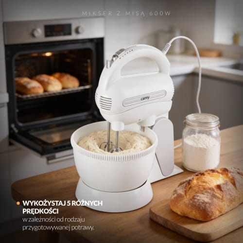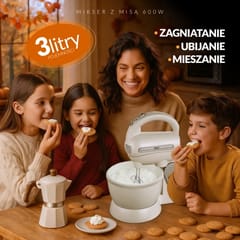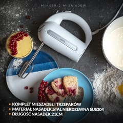 - Funkcje: mieszanie, ubijanie piany, zagniatanie ciasta