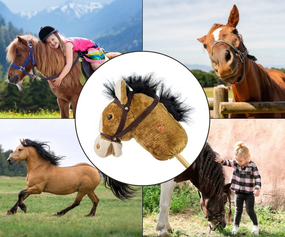 • Bezpieczeństwo podczas zabawy: solidny drewniany kij i miękki materiał na głowie konia