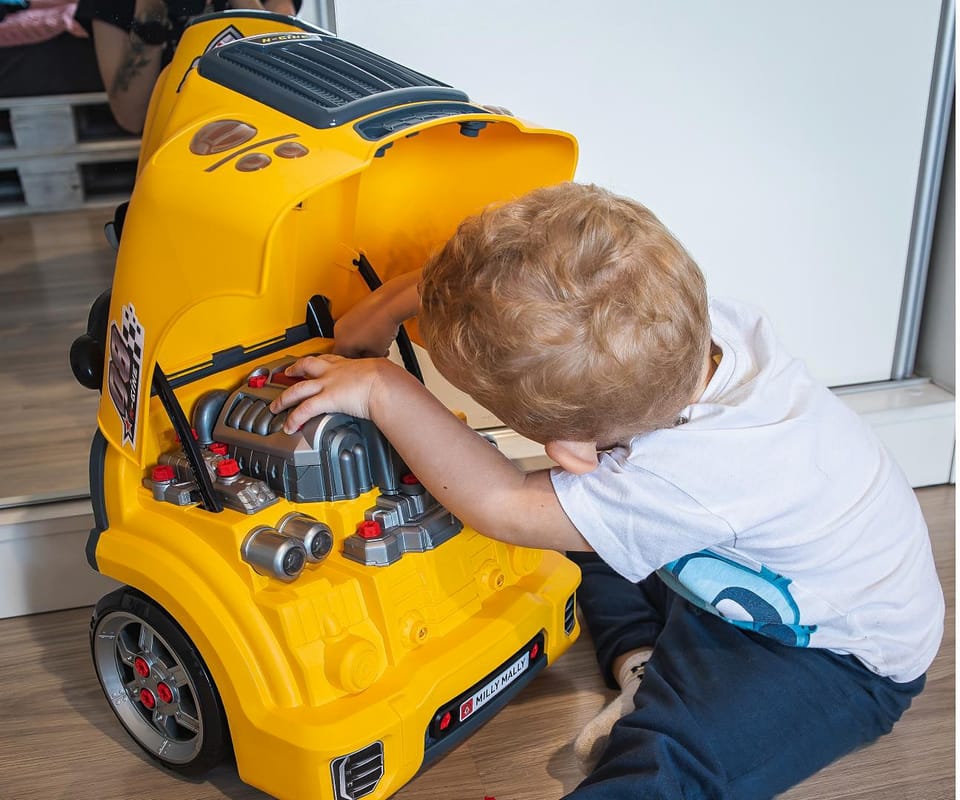 Silnik rozkręcany N-GINE od Milly Mally to innowacyjna zabawka edukacyjna, która pozwala dzieciom poczuć się jak prawdziwi mechanicy! Ten realistyczny model przodu auta z otwieraną maską i dokładnie odwzorowanym silnikiem umożliwia samodzielne skręcanie i rozkręcanie jego elementów. Idealna propozycja dla małych miłośników motoryzacji do wspólnych zabaw z rodzicem.Zabawka wyposażona jest w efekty świetlne i dźwiękowe, które dodają emocji i realizmu podczas zabawy. Dzięki zestawowi narzędzi i ruchomym częściom dziecko może naprawiać auto, wymieniać koła, dokręcać śruby i uczyć się podstaw mechaniki przez działanie. Rozwija zdolności manualne, logiczne myślenie i wspiera naukę poprzez zabawę.N-GINE to nie tylko świetna zabawa, ale też wartościowe wsparcie rozwoju dziecka. Doskonały wybór dla dzieci ciekawych świata techniki i motoryzacji. Zabawa w mechanika jeszcze nigdy nie była tak realistyczna i rozwijająca!Zabawka wykonana w modelu nauczania STEM (science, technology, engineering, mathematics).Jest rekomendowana dla dzieci w wieku 3+ CHARAKTERYSTYKA: