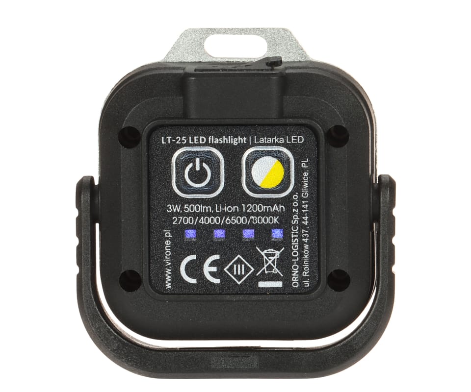Mini latarka LED COB 3W to poręczne źródło światła do zastosowań w warsztacie, garażu, piwnicy i podczas wyjazdów. Ma wbudowany akumulator Li-ion 1200 mAh ładowany przez USB-C (kabel w zestawie) oraz 4-stopniowy wskaźnik naładowania, który ułatwia kontrolę poziomu baterii.