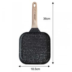 Patelnia posiada ergonomiczny uchwyt, który się nie nagrzewa, co zwiększa bezpieczeństwo i wygodę smażenia. Jest kompatybilna z większością typów kuchenek, w tym gazowych, elektrycznych oraz indukcyjnych. To praktyczny dodatek do kuchni dla osób, które cenią smak grillowanych potraw i chcą szybko przyrządzać ulubione przekąski czy lekkie dania na co dzień.