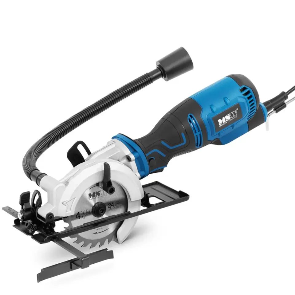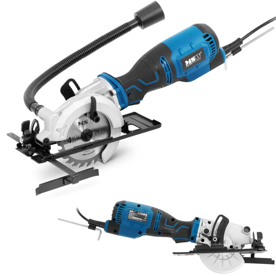 Ręczna mini pilarka tarczowa marki MSW idealnie sprawdza się na budowach, w warsztatach wszelkiego rodzaju i nadaje się do majsterkowania. Mocny silnik 705 W i prędkość 3500 obr./min sprawiają, że bez wysiłku przecina najtwardsze drewno. Dołączona prowadnica zapewnia precyzyjną i łatwą obsługę oraz perfekcyjne wykonanie nacięcia. Skala pozwala ustawić szerokość ogranicznika (0 - 170 mm) w zależności od projektu. Głębokość cięcia regulowana jest w zakresie od 0 - 42,8 mm. Przy nachyleniu 45° maksymalna głębokość wynosi 28 mm. Ostrze ma grubość 1,2 mm. Klasa ochrony II pozwala bezpiecznie używać mini pilarki tarczowej. Jest ona też chroniona przez wzmocnioną izolację. Uniwersalność i ergonomiczna konstrukcja sprawiają, że cięcie urządzeniem jest bardzo wygodne i łatwe, zarówno w domu, jak i na budowie.
