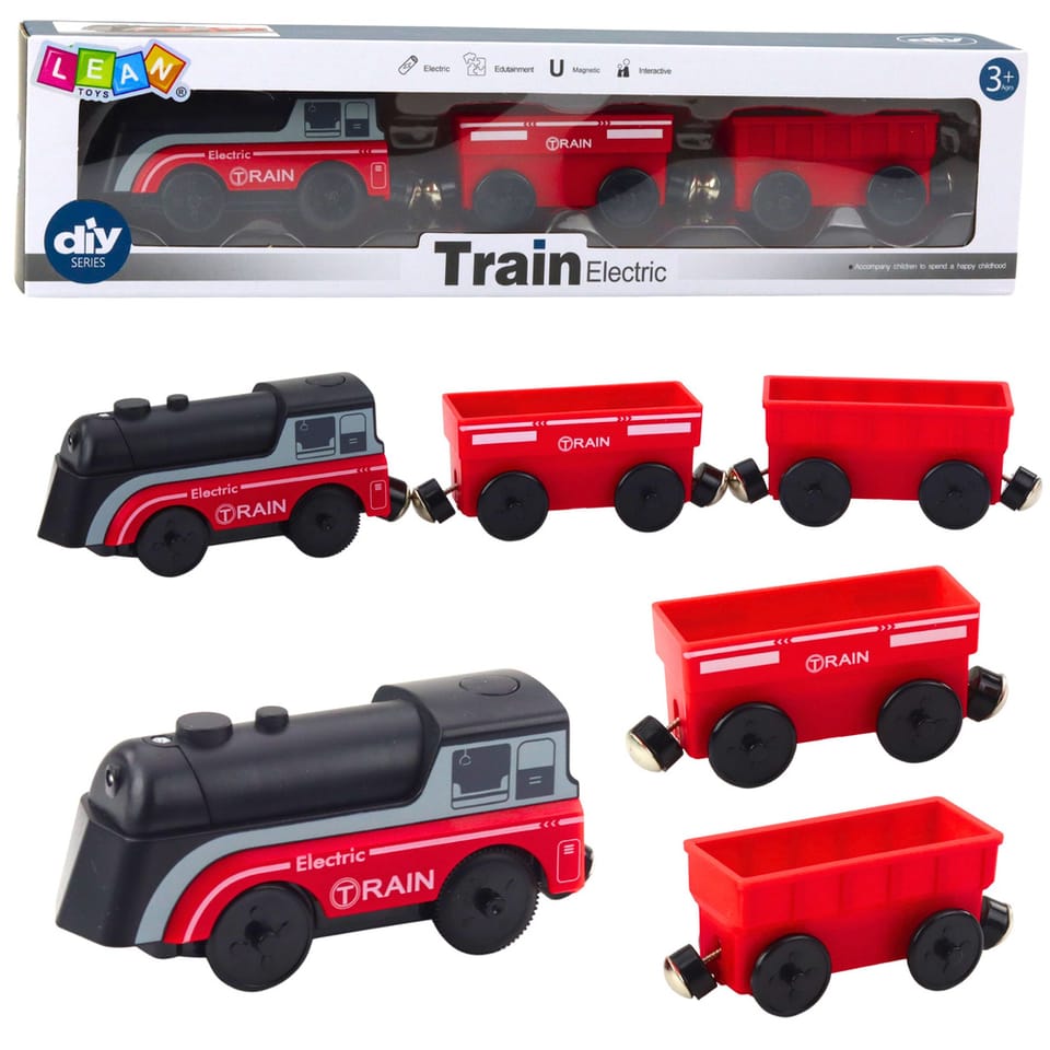 Kolorowy pociąg z elektryczną lokomotywą i wagonikami łączonymi na magnes to doskonała zabawka dla dzieci już od najmłodszych lat. Lokomotywa porusza się samodzielnie, świeci światełkiem i zachęca malucha do interakcji. Dzieci mogą obserwować jadący pociąg, ścigać go, łapać, a następnie łączyć wagoniki, co rozwija zdolności manualne oraz kreatywność.