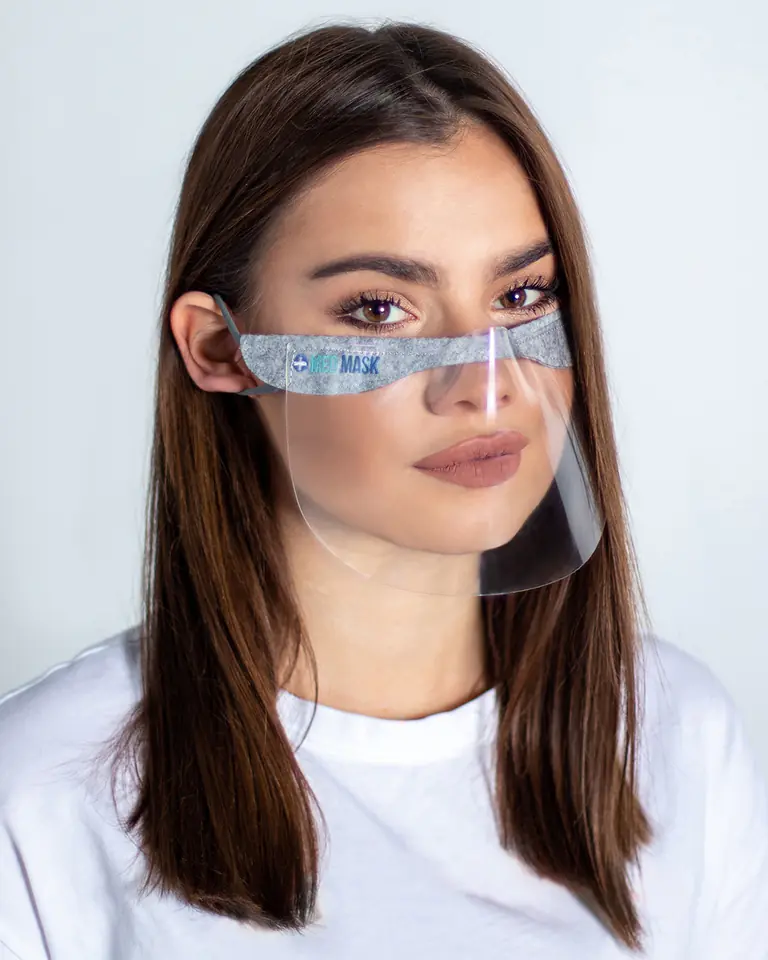 Mini przyłbica wielokrotnego użytku Wielorazowa mini przyłbica ochronna o ergonomicznym kształcie, dobrze przylegająca do twarzy. Wykonana z miękkiego filcu oraz cienkiej przezroczystej warstwy PVC. Produkt zapakowany po 2 szt. zawiera pokrowiec ochronny. Swobodne oddychanie. Działa z Face ID. Idealna do okularów. Wielokrotnego użytku. Lekka i elastyczna. Swobodne oddychanie. Wygodna, higieniczna praca. Zmniejsza ryzyko zakażeń przenoszonych drogą kropelkową. Wykonana z wysokiej jakości delikatnego filcu i elastycznego tworzywa PET. Łatwa w dezynfekcji. Rozmiar uniwersalny. Idealnie przylega do każdej twarzy. Mini przyłbica przeznaczona jest dla osób, dla których swobodne oddychanie, transparentność w kontakcie jest niezbędna czy to w życiu codziennym, czy w wykonywanej pracy. Idealna dla pracowników biurowych, sprzedawców, dla osób starszych, nauczycieli, uczniów klas zwykłych i integracyjnych. Szczególnie pomocna w prowadzeniu zajęć logopedycznych czy pracy z uczniami niesłyszącymi, gdzie wymagana jest forma komunikacji poprzez czytanie z ust.