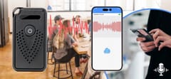 Kompaktowe urządzenie (60 × 30 × 10 mm) łączące funkcje dyktafonu, rejestratora z aktywacją głosową i zdalnego nasłuchu przez sieć WiFi. Działa bez karty SIM i bez miesięcznych abonamentów — komunikuje się wyłącznie przez sieć WiFi 2,4 GHz, a dźwięk przesyła w czasie rzeczywistym przez darmową aplikację CAMSC dostępną na iOS i Android.