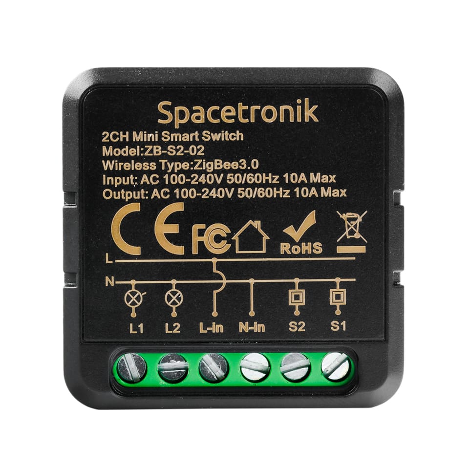 Mini switch dopuszkowy przekaźnik Zigbee 3.0 Tuya Podwójny Spacetronik ZB-S2-02