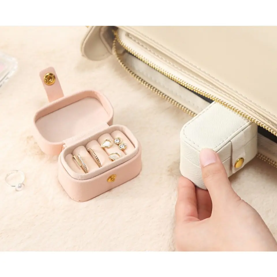 Praktyczna szkatułka na biżuterię Jest niezwykle funkcjonalna i zajmuje niewiele miejsca.Idealny gadżet w podróży do przechowywania cennej biżuterii - pierścionków bądź kolczyków. Specyfikacja:- Wysokiej jakości materiały użyte do produkcji to gwarancja jakości,- Kompaktowe rozmiary,- Posiada zamknięcie w postaci zatrzasku,- Pokryta eleganckim materiałem z ekoskóry, natomiast środek wypełniony miękkim welurowym materiałem Wymiary zewnętrzne:6,2 x 3,1 x 3,7 cm Waga:35 g