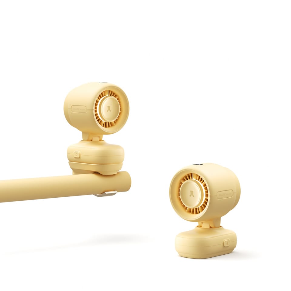 - - Mini wentylator na wózek dziecięcy z metalowym klipsem 5000mAh - żółty.