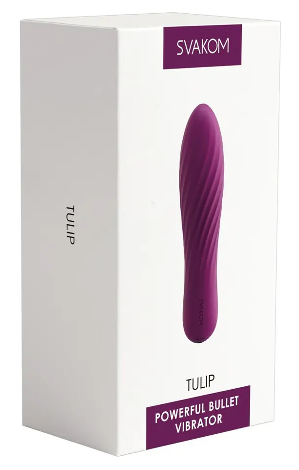 Mini wibrator Tulip marki Svakom ze stymulującymi rowkami. Mały, kompaktowy, mocny i ultra-delikatny, silikonowy wibrator doskonale leży w dłoni - i mieści się w każdej kieszeni! Intensywnie stymulujący, przyjazny dla początkujących, lekki (42 g). 10 intensywnych trybów wibracji, które można wygodnie regulować za pomocą jednego przycisku. Wibrator Tulip jest wodoodporny.