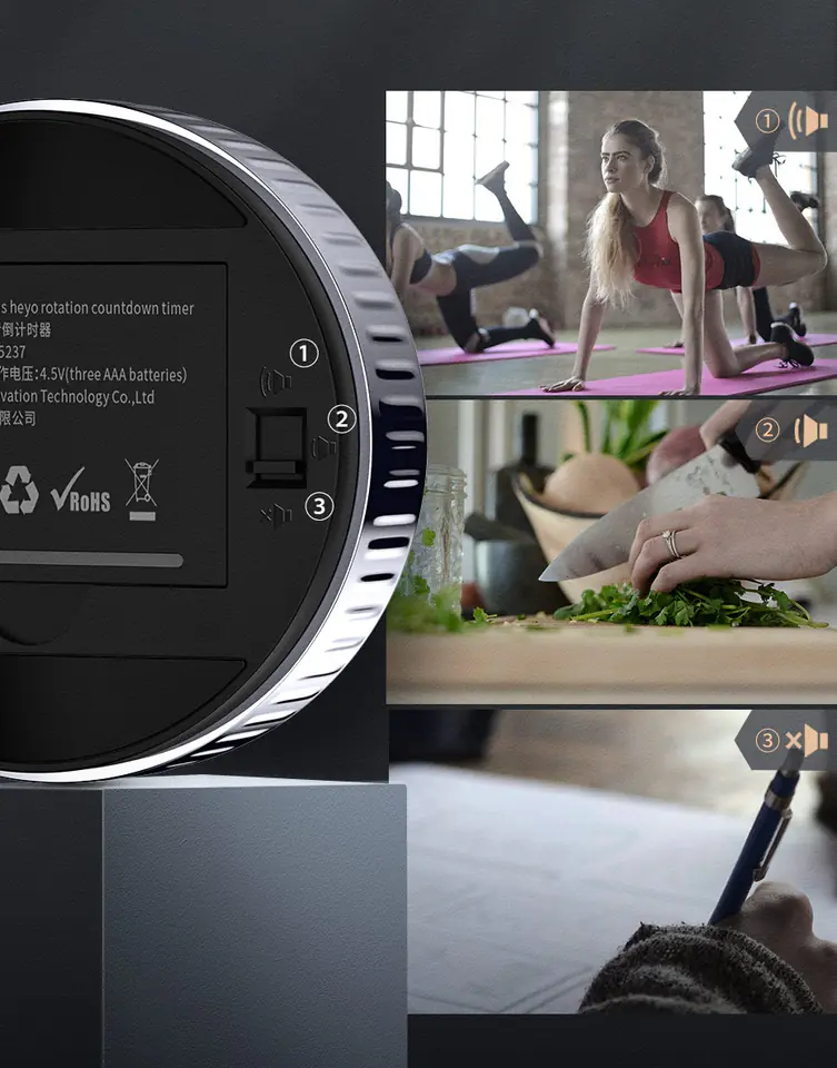 Minutnik reguluje się w łatwy sposób za pomocą obracania jego obudowy. Dzięki dużemu wyświetlaczowi możesz zobaczyć odliczany czas, nawet z daleka. Jeśli nie chcesz, aby za pomocą dźwięku informował Cię o kończącym się czasie, możesz zupełnie wyłączyć funkcję dźwięku.