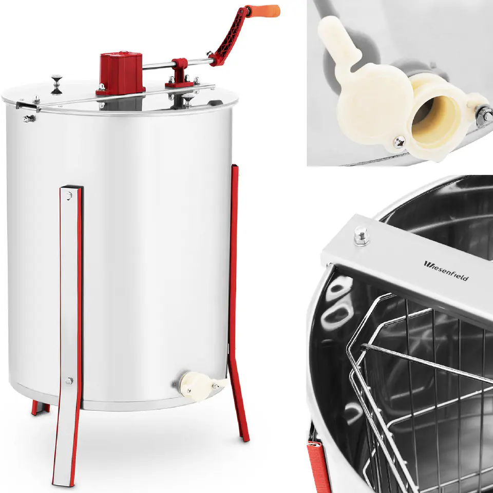 Kod producenta: 10280028Miodarka marki Wiesenfield doskonale sprawdzi się w każdej przydomowej czy średniej pasiece do odwirowywania miodu z plastrów pszczelich.Wirówka może jednocześnie odwirowywać miód z 4 ramek. Miodarka wykonana została ze stali nierdzewnej oraz wysokiej jakości tworzywa sztucznego. Przekładnię wykonano ze stali hartowanej. 3 nóżki zapewniają urządzeniu stabilność. Miodarka posiada kranik do łatwego dozowania miodu. Wirowanie odbywa się ręcznie za pomocą korby.Cechy produktu:
