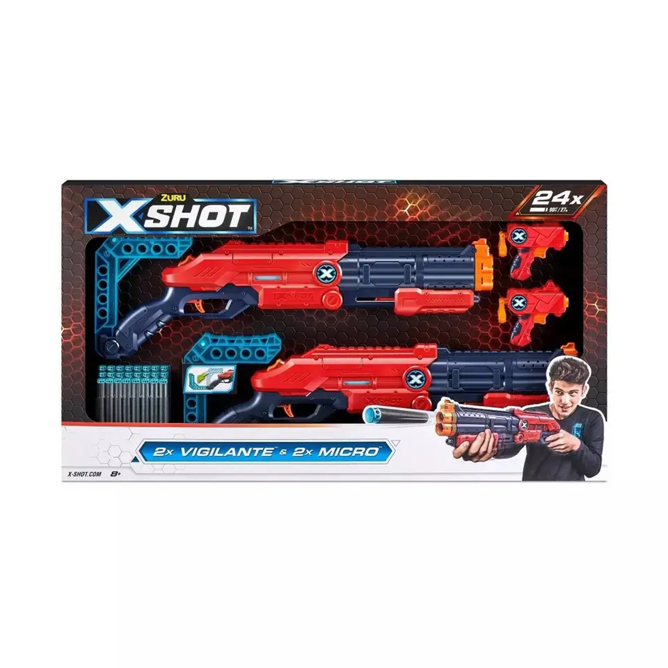 - Jeden zestaw X-Shot Excel Double Combo Pack to 2 Vigilante Blastery i 2 Micro Blastery - w sumie 4 sztuki zabawkowej broni!