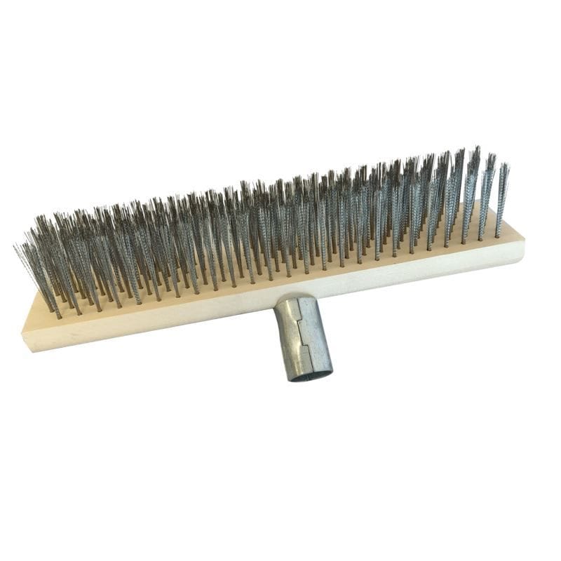 Miotła / szczotka druciana do czyszczenia bruku i chodnika – 30 cm, drut stalowyWytrzymała miotła druciana o szerokości 30 cm to idealne narzędzie do intensywnego czyszczenia kostki brukowej, chodników, krawężników, płyt betonowych oraz innych twardych nawierzchni z mchu, chwastów, błota i zaschniętego brudu.Zastosowane w szczotce sztywne druty stalowe skutecznie usuwają uporczywe zanieczyszczenia, a solidna konstrukcja głowicy zapewnia długą żywotność nawet przy intensywnym użytkowaniu. Można ją zamontować na standardowym trzonku drewnianym lub metalowym.Cechy produktu:✅ Szerokość robocza: 30 cm✅ Włosie z drutu stalowego – bardzo trwałe i skuteczne w czyszczeniu✅ Do pracy na zewnątrz – idealna do kostki brukowej, tarasów, chodników, podjazdów✅ Odpowiednia do trudnych zanieczyszczeń – mech, chwasty, błoto, ziemia✅ Możliwość montażu na klasyczny trzonek (brak w zestawie)