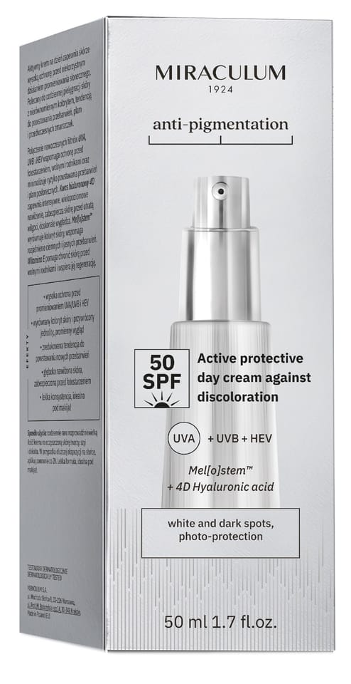 Aktywny krem na dzień zapewnia skórze wysoką ochronę przed niekorzystnym działaniem promieniowania słonecznego. Polecany do codziennej pielęgnacji skóry z nierównomiernym kolorytem, tendencją do powstawania przebarwień, plam i przedwczesnych zmarszczek. Połączenie nowoczesnych filtrów UVA, UVB i HEV wspomaga ochronę przed fotostarzeniem, wolnymi rodnikami oraz minimalizuje ryzyko powstawania przebarwień i plam posłonecznych.