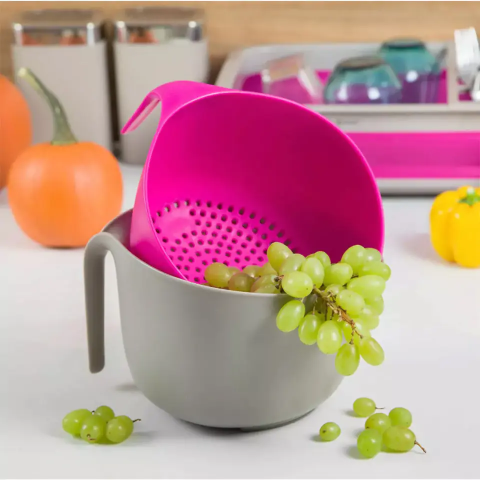 Misa o pojemności 4l może służyć do mieszania ciasta, sałat oraz serwowania ich na stół. Durszlak w prosty sposób pomaga odcedzić umyte owoce, warzywa, sałatę, oraz inne składniki. Naczynia wykonane zostały z odpornego na pękanie i bezpiecznego dla zdrowia tworzywa wysokiej jakości. Ciekawe zestawienie kolorystyczne stanowić będzie ozdobę każdej kuchni.