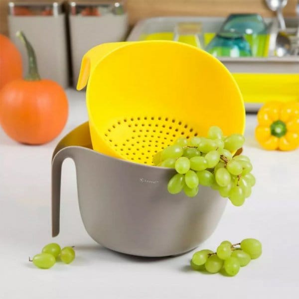 Misa o pojemności 4l może służyć do mieszania ciasta, sałat oraz serwowania ich na stół. Durszlak w prosty sposób pomaga odcedzić umyte owoce, warzywa, sałatę, oraz inne składniki. Naczynia wykonane zostały z odpornego na pękanie i bezpiecznego dla zdrowia tworzywa wysokiej jakości. Ciekawe zestawienie kolorystyczne stanowić będzie ozdobę każdej kuchni.