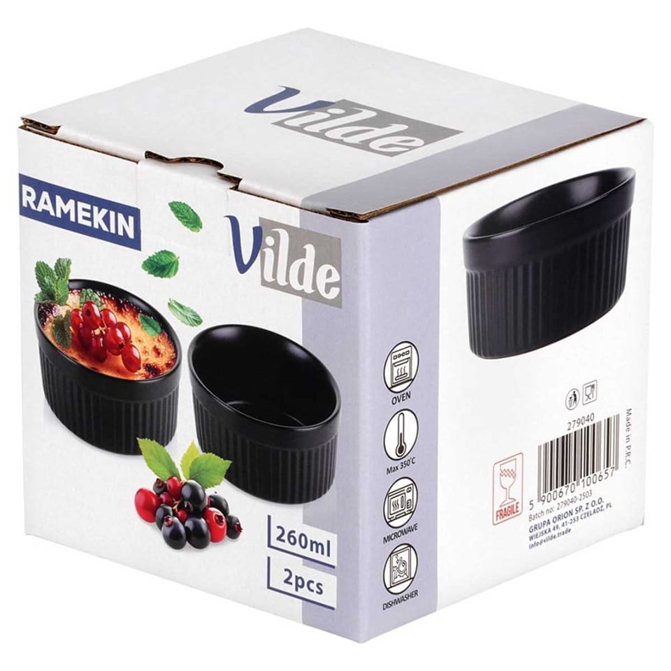 - Zestaw 2 szt. miseczek żaroodpornych - Zestaw dwóch miseczek do zapiekania w formie kokilek. Każda kokilkach o wymiarach 10 x 5 cm i pojemności 260 ml. Idealne do zapiekania ziemniaków, pieczonych warzyw, zapiekanek, deserów itp.