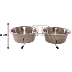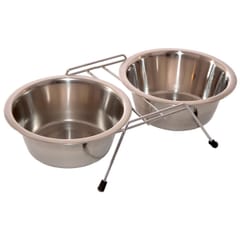 Szukasz fajnej i funkcjonalnej miski dla Swojego psa lub kota? Ten zestaw misek ze STALI NIERDZEWNej 2X550ML na stojaku będzie idealny!Kolor: srebrny Materiał: stal nierdzewna, guma - nakładki Pojemność misek: 2 x 550 ml Wymiar miski: 14,5 x 6 cm (śr. x wys.) Waga miski: 0,080 kg Wymiar stojaka: 33 x 16 x 7 cm (dł. x szer. x wys.) Wymiary całego zestawu: 34,5 x 17 x 8 cm (szer. x gł. x wys.) Waga netto: 0,310 kg Waga brutto: 0,350 kg Wymiary opakowania (folia): 35 x 18 x 10 cm (szer. x gł. x wys.)