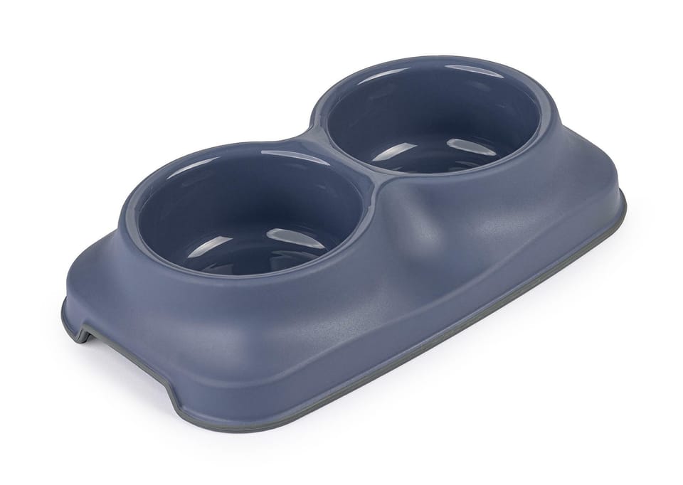 Miska plastikowa podwójna GLAM 2x0.4 L Miska plastikowa, odpowiednia dla kotów i psów. Łatwa w utrzymaniu w czystości. Posiada antypoślizgową gumę na spodzie. Dostępna w 3 kolorach. Pojemność: 2 x 0,4 L Materiał: plastik Kolor: niebieski