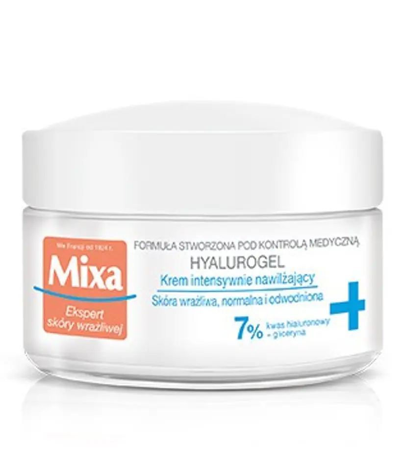 Mixa HYALUROGEL Krem intensywnie nawilżający to kosmetyk stworzony dla osób o skórze wrażliwej, która wykazuje oznaki odwodnienia odpowiedzialne za jej zmęczenie, spadek elastyczności i utratę blasku. Mixa HYALUROGEL dostarcza i utrzymuje nawilżenie skóry przez 24 h, dzięki formule wzbogaconej w kwas hialuronowy, zdolny wiązać 1000 razy więcej wody niż sam waży.