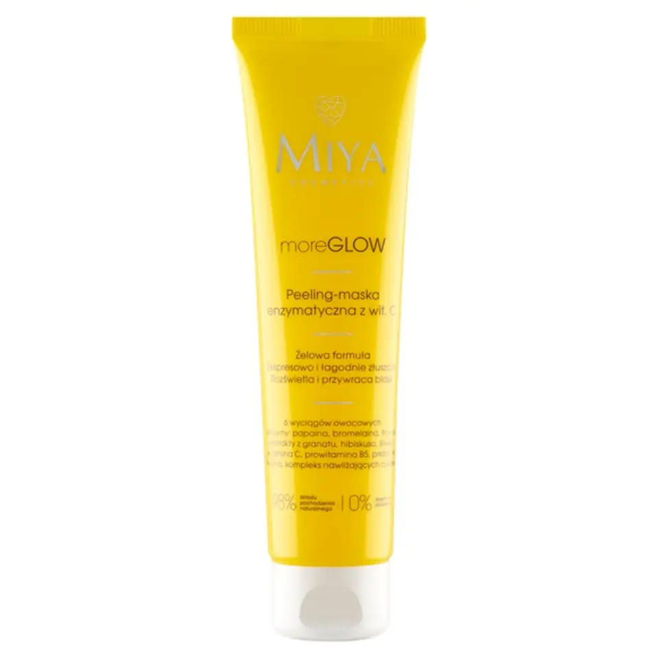 Miya Cosmetics MoreGLOW peeling-maska enzymatyczna z witaminą C 60ml (P1)5904804150761Ekspresowo złuszcza, odświeża, przywraca zdrowy blask i rozjaśnia. Żelowa formuła, nie zawiera drobinek ściernych. Wzbogacona o 6 wyciągów owocowych i witaminę C. Do każdego typu skóry, w tym wrażliwej, problematycznej, naczynkowej, reaktywnej, która nie może stosować peelingów mechanicznych.• Witamina C: rozświetla, rozjaśnia przebarwienia, wygładza i przywraca promienność.• Ficyna: enzym z miąższu fig o działaniu złuszczającym, niwelującym zaskórniki.• Ekstrakt z hibiskusa: zmiękcza skórę, nawilża.• Fermentowany ekstrakt z granatu: naturalny postbiotyk, rewitalizuje, uelastycznia skórę.• Ekstrakt ze śliwki: wyrównuje koloryt, zmniejsza przebarwienia i niedoskonałości.• Bromelaina: enzym z ananasa wspomaga redukcję zaskórników, redukuje wydzielanie sebum, dodaje blasku, wygładza.• Papaina: enzym z papai złuszcza skórę, oczyszcza i zwęża pory, rozjaśnia przebarwienia.• Prowitamina B5: nawilża, zmiękcza skórę.• Kompleks nawilżających cukrów: dodaje miękkości i elastyczności skórze.• Inulina: prebiotyk z korzenia cykorii, nawilża i wzmacnia.Wielokierunkowe działanie:Już po 1 użyciu: oczyszcza, złuszcza, nawilża, pozostawia skórę miękką i promienną.Przy regularnym stosowaniu: rozjaśnia przebarwienia, wyrównuje koloryt, zmniejsza pory i zmarszczki, zapewnia efekt „baby face”.98% składu pochodzenia naturalnego, 0% zbędnych dodatkówFormuła na bazie składników pochodzenia naturalnego, bez zbędnych dodatków obciążających skórę. Nie zapycha porów. Przebadany dermatologicznie. Wegański. Może być stosowany przez kobiety w ciąży i karmiące.Sposób użycia: Aplikuj peeling na oczyszczoną, suchą skórę twarzy, szyi i dekoltu, spłucz letnią wodą po 3–4 minutach. Możesz zastosować produkt jako rozświetlającą maseczkę, nakładaj grubszą warstwą i zmyj po 8–10 minutach. Stosuj 2–3 razy w tygodniu.
