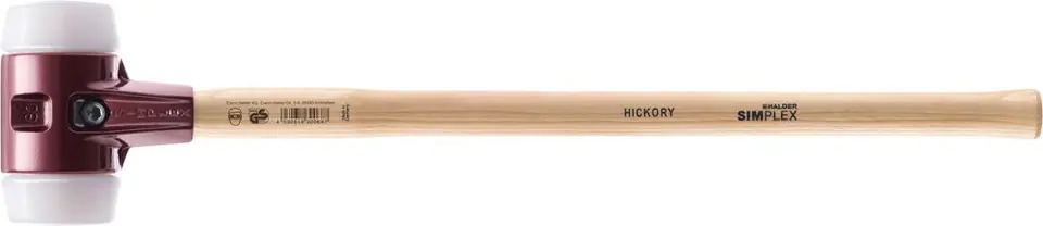 Wykonanie: Dwuczęściowy korpus ze staliwa, z białymi, średnio twardymi łbami do pobijania z tworzywa Superplastik i z trzonkiem z drewna hikorowego. Wszystkie części są wymienne. Mocowanie śrubą.