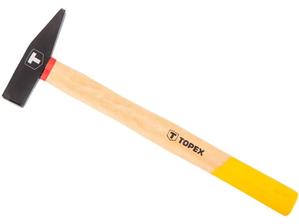 Młotek ślusarski TOPEX (nr ref. 02A402) o wadze 200 g przeznaczony jest do drobnych prac montażowych i budowlanych. Trzonek wykonany z mocnego drewna o dużej wytrzymałości na złamania, dzięki lekkiemu wyprofilowaniu dobrze układa się w dłoni. Certyfikaty TÜV, GS oraz wykonanie produktu zgodnie z normą DIN 1041 są gwarantem jego niezawodności. Marka TOPEX skierowana jest do majsterkowiczów.