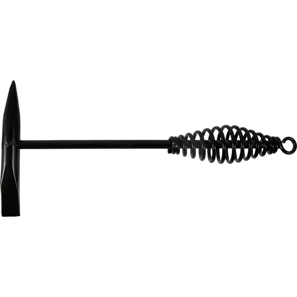 - Wyposażony w spiralną metalową rękojęść, która amortyzuje efekt uderzenia i odrzutu