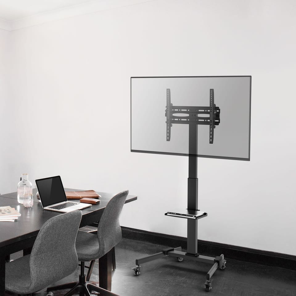 Przeznaczenie: Telewizory LCDMontaż: WolnostojącyTyp uchwytu: StojakRozmiar ekranu: 32” – 55”Maks. Obciążenie: 35 kgStandard VESA: 100x100, 200x100, 200x200, 300x200, 400x200, 300x300, 400x300, 400x400Regulacja w poziomie: +10° ~ -10°Regulacja wysokości uchwytu TV: 1020 mm / 1070 mm / 1120 mm / 1170 mm / 1220 mm / 1270 mm / 1320 mmMaks. obciążenie półki: 5 kgRegulacja wysokości półki: TakZarządzanie kablami: TakMateriał: Stal, plastikWykończenie powierzchni: Malowany proszkowoKolor: CzarnyW zestawie: Śruby montażowe