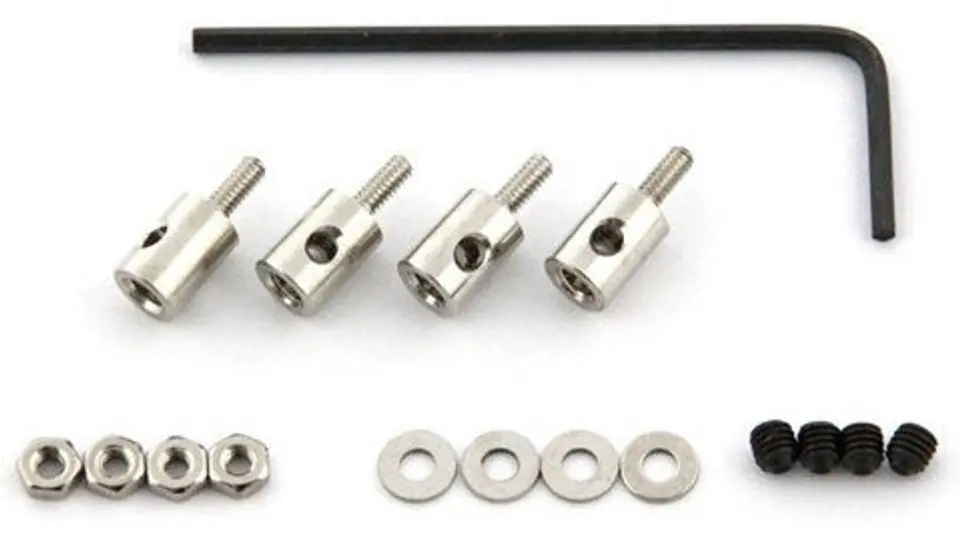 Mocowanie bowdena na serwo w rozmiarze M2, wyprodukowane przez firmę Q-Model.W zestawie znajduje się klucz imbusowy pomocny przy dokręcaniu mocowania na popychaczu.